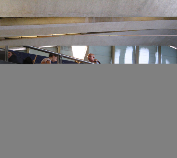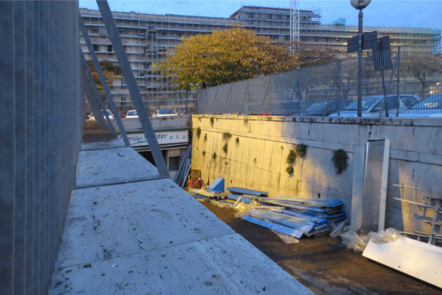 Esta construção é separado a partir da estrutura dos escritórios no segundo andar, a uma altura de entre 13,50 e 9.80my novamente a subir para 12,5 m para formar a saliência.