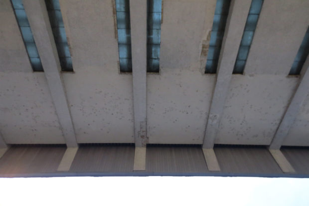 O esqueleto da estação é formado por uma estrutura de betão com nervuras reforçadas na tampa também pilares de betão.
