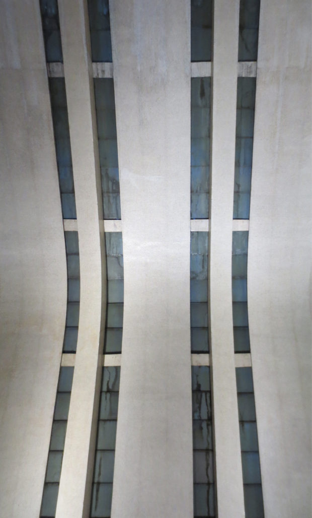 Em algumas das paredes interiores, principalmente nas asas feitas por Mazzoni você pode apreciar a utilização de paredes de tijolo jateados tanto nas grandes arcos.