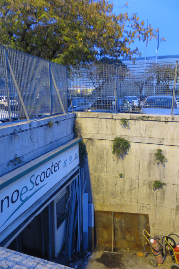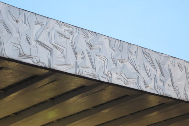 O abrigo que cobre o átrio é considerado um dos exemplos mais significativos de RACIONALISMO italiana. É constituída por uma sucessão de elementos de betão armado totalmente com uma forma sinuosa é conhecido pelo apelido de “dinossauro”. Esta forma é realçado mais claramente através das janelas que se fecham para o espaço em três lados.