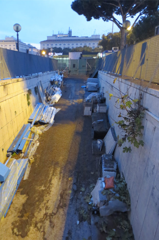 A partida de Mazzoni para a Colômbia e o início da II Guerra Mundial suspendeu a construção na estação Termini. Quando a guerra terminou, as asas da nova estação foram quase completa, embora a fachada do edifício não foi construído.