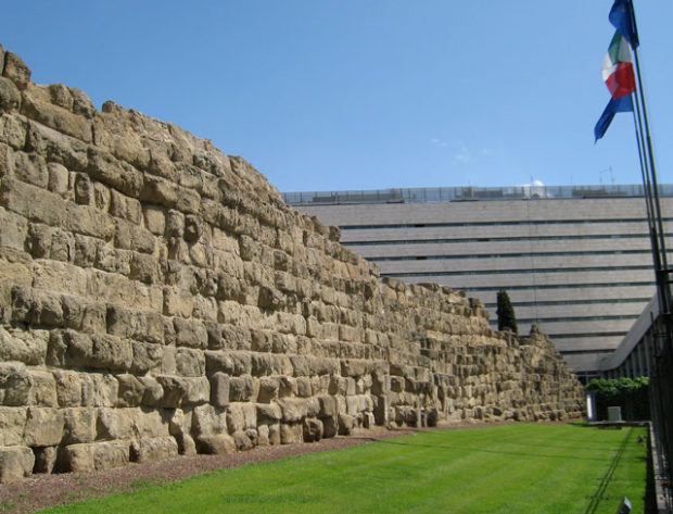 O restaurante está localizado ao norte da sala e, de repente, separados por os restos de uma parede etrusca.